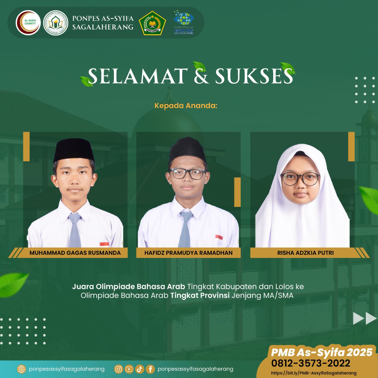 Semoga dengan prestasi-prestasi yang ananda-ananda raih, bisa memotivasi santri yang lainnya agar lebih bersemangat lagi dalam belajar terutama di bidang bahasa arab.